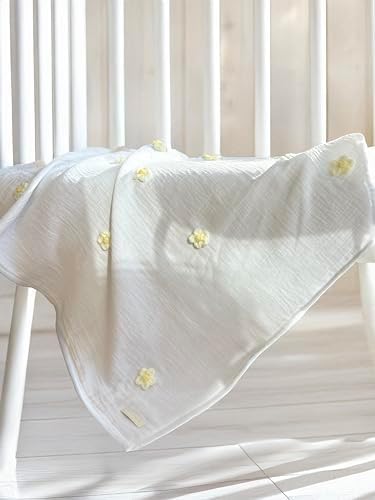 and Bestie Papatya İşlemeli Doğal Dokusu Pamuk Müslin Bebek Battaniyesi 75×75 cm (Beyaz)