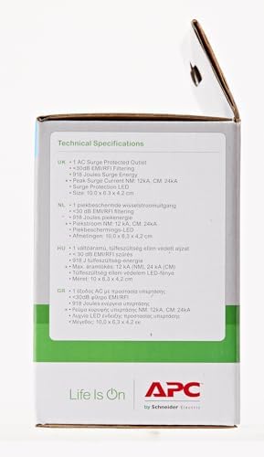 APC Surge Protector PM1W-GR – Aşırı gerilim korumalı priz adaptörü (1 Schuko fiş, PC, TV vb. için – Renk: Siyah)