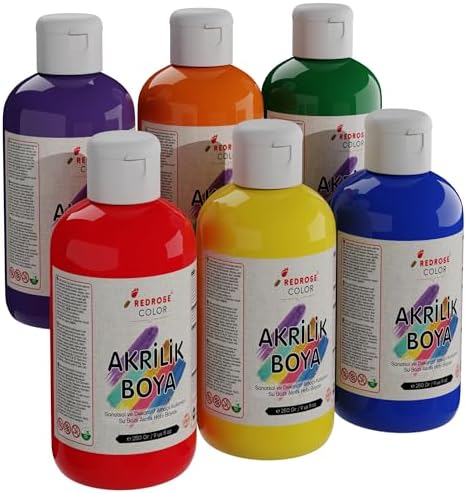 Dayanıklı yapısıyla uzun süre kullanılabilir Ara Renkler Akrilik Boya 6'lı Set 6×250 gr