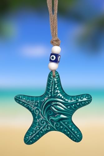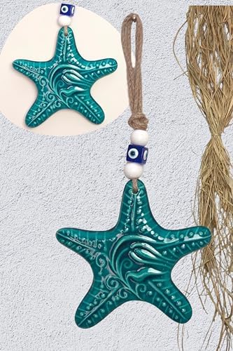 art inside Seramik Duvar Dekorasyon Objesi Okyanus Deniz Temalı Hasır İşlemeli ve Nazar Boncuğu Detaylı (Deniz Yıldızı)