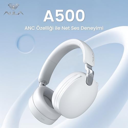 AULA A500 Hybrid ANC 2.4GHz Kablosuz ve Bluetooth 5.4 AUX Mikrofonlu Kulak üstü Kulaklık Beyaz