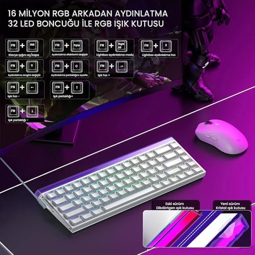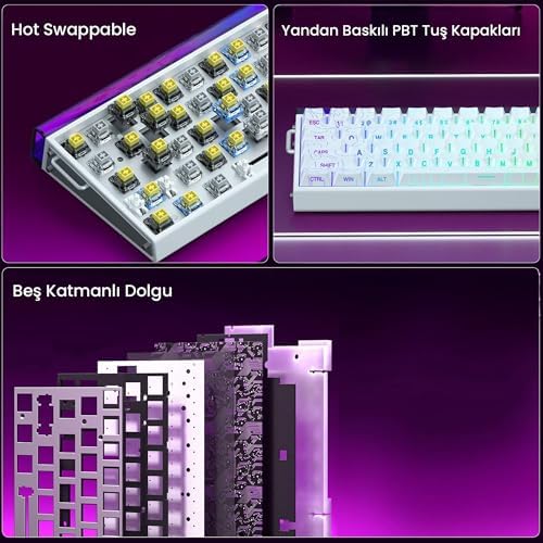 Yenilikçi Manyetik Switch ve MeteorSwitch Teknolojisi: Bu manyetik klavye, geleneksel mekanik klavyelerin ötesine geçerek Meteor manyetik switch teknolojisini kullanır. Her manyetik switch, Hall Effect sensörü ile donatılmıştır ve 33 gf tetikleme kuvveti sunar. Ayrıca, 0.01 mm hassasiyet ayarı sayesinde kullanım deneyimini tam olarak kişiselleştirmenize olanak tanır. Meteor Switch’ler sayesinde daha uzun ömürlü ve tutarlı bir performans elde edersiniz. Ultra Hızlı 8000Hz Raporlama ve Trigger Özelliği: 8000 Hz raporlama hızı, standart klavyelerin sekiz katı daha hızlıdır ve rekabetçi oyunlarda size önemli bir avantaj sağlar. Trigger teknolojisi sayesinde, tuşun bırakılması ile yeniden basılması arasındaki mesafe en aza indirilerek komutların çok hızlı iletilmesi sağlanır. 0.125 ms gecikme süresi ile oyun performansınız maksimuma çıkar. Hot Swap ve RGB Aydınlatma Sistemi: Hot Swap özelliği sayesinde manyetik switch’leri kolayca değiştirebilir ve klavyenizi tamamen kişiselleştirebilirsiniz. 16.8 milyon renk desteği ile her tuşun aydınlatmasını ayrı ayrı ayarlayabilir, farklı oyun profilleri oluşturabilirsiniz. Güney yönlü (South-facing) LED tasarımı, daha parlak ve etkili bir aydınlatma deneyimi sunar. Kompakt %65 Tasarım ve Ergonomik Yapı: %65 düzeninde tasarlanan bu kompakt klavye, masanızda daha fazla alan bırakır ve oyuncu deneyimini geliştirir. PO ses yalıtım katmanları ve silikon alt taban, klavyenin sessiz çalışmasını sağlar. Cherry profil PBT Double Shot tuşlar ise uzun süreli kullanımlarda üstün konfor sunar. Web Tabanlı Yazılım ve Çoklu Platform Desteği: Kurulum gerektirmeyen web tabanlı yazılım sayesinde, Meteor Switch ayarlarını, Trigger hassasiyetini ve RGB efektlerini kolayca tarayıcınız üzerinden özelleştirebilirsiniz. Windows, MacOS ve Linux işletim sistemleriyle tam uyumlu olan bu klavye, her platformda yüksek performans sunar. Aula HERO68 Hangi Switch Türleriyle Uyumludur? Aula HERO68, yalnızca manyetik switch türleriyle uyumludur. Kutudan çıkan Meteor manyetik switch’lerin yanı sıra, Hot Swap özelliği sayesinde diğer uyumlu manyetik switch’lerle kolayca değiştirilebilir. Geleneksel mekanik switch’lerle uyumluluğu bulunmamaktadır. Trigger Özelliği Nasıl Avantaj Sağlar? Trigger teknolojisi, tuş bırakma ve yeniden basma mesafesini 0.01 mm’ye kadar düşürür. Bu sayede, tuşlar tam bırakılmadan yeniden tetiklenerek çok hızlı komut iletimi sağlanır. Özellikle FPS oyunlarında counter-strafe hareketlerinde önemli bir avantaj sunar. 8000Hz Raporlama Hızı Standart Klavyelerden Nasıl Farklıdır? 8000 Hz raporlama hızı, standart 1000 Hz klavyelere kıyasla sekiz kat daha hızlıdır. 0.125 ms gibi çok düşük gecikme süresiyle, tepki süresi neredeyse sıfıra iner ve bu sayede oyunlarda daha hızlı ve hassas hareket etmenize olanak tanır. RGB Aydınlatma Sistemi Ne Kadar Özelleştirilebilir? 16.8 milyon renk desteğiyle her tuşun aydınlatmasını ayrı ayrı kontrol edebilirsiniz. Web tabanlı yazılım üzerinden farklı oyun profilleri oluşturabilir, RGB efektlerini tamamen kişiselleştirebilirsiniz. South-facing LED teknolojisi, daha parlak ve net bir görüntü sağlar. Aula Hero 68 He Manyetik Klavye Trigger Jade Switch 8000Hz RGB Neon TKL Hot Swap Oyuncu Klavyesi Beyaz