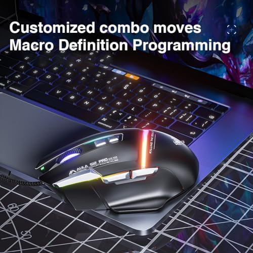 Aula S12 Pro 12800 DPI 8 Tuşlu Makrolu Kablolu Optik Gaming Oyuncu Mouse Siyah