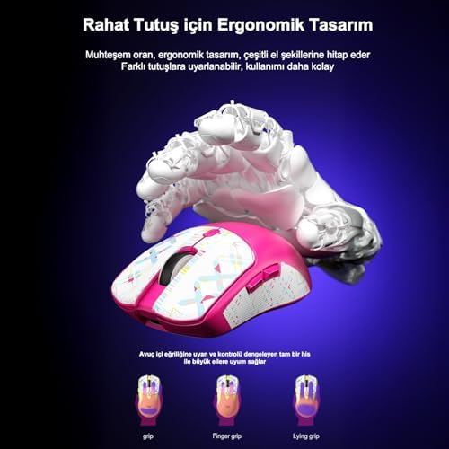 Hassas PAW3395 Sensör ve 1000Hz Yenileme Hızı PAW3395 sensör teknolojisi ile donatılmış bu gaming mouse, 800-10000 DPI arasında 6 farklı hassasiyet seviyesi sunar. 1000Hz yenileme hızı ile ultra-responsive performans sağlayan mouse, profesyonel oyunculara lag-free oyun deneyimi yaşatır. Programlanabilir Tuşlar ve Makro Desteği 6 programlanabilir tuş ile donatılmış kablosuz oyuncu mouse, Windows driver yazılımı ile makro desteği sunar. Oyun ve çalışma deneyiminizi kişiselleştiren bu özellik, verimliliğinizi artırır. Not: Bluetooth modunda özelleştirme desteği bulunmamaktadır. Uzun Süreli Batarya ve Dayanıklılık 500mAh batarya kapasitesi ile 10-14 gün kullanım süresi (günde 5 saat) sunan gaming mouse, USB-C ile hızlı şarj imkanı sağlar. 10 milyon tıklama dayanıklılığı ile uzun ömürlü kullanım garantisi verir. Ergonomik Tasarım ve Anti-Slip Özellik Sadece 84g ağırlığında ergonomik tasarıma sahip bu oyuncu mouse, uzun süreli kullamlarda el yorgunluğunu minimize eder. Anti-slip çıkartmalar ile güvenli tutuş sağlar ve performansınızı artırır. Bu gaming mouse hangi işletim sistemlerinde çalışır? AULA SC580X, Windows, Mac, Linux ve işletim sistemlerinde tam uyumlu çalışır. Üç farklı bağlantı modu ile tüm cihazlarınızda sorunsuz kullanım sağlar. PAW3395 sensör ne kadar hassas? PAW3395 sensör teknolojisi ile 800-10000 DPI arasında 6 farklı hassasiyet seviyesi ayarlayabilirsiniz. 1000Hz yenileme hızı ile ultra-responsive performans elde edersiniz. Batarya ömrü ne kadar? 500mAh batarya kapasitesi ile günde 5 saat kullanımda 10-14 gün boyunca kesintisiz kullanım sağlar. USB-C ile hızlı şarj imkanı mevcuttur. Makro programlama özelliği var mı? Evet, 6 programlanabilir tuş ile Windows driver yazılımı üzerinden makro programlama yapabilirsiniz. Bluetooth modunda bu özellik desteklenmez. Aula SC580X Lightweight PAW3395 Sensor 10000 DPI 1000Hz Kablolu ve Kablosuz Gaming Oyuncu Mouse Beyaz
