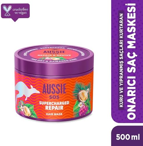 Aşırı stresli saçları onarmaya yardımcı olur ve hasara karşı koruma sağlar*. Aussie SOS 1 Dakikada Kuru ve Yıpranmış Saçları Kurtaran Saç Maskesi 500ml