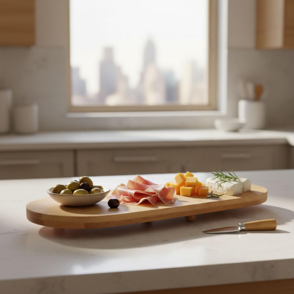 Ayaklı Bambu Sunum Tabakları, Ayaklı Bambu Sunumluk, Kek, Börek, Çörek ve Çikolata Sunum Tepsisi Yuvarlak Kenarlı Oval Sunumluk (34xm*15cm*1,5cm)