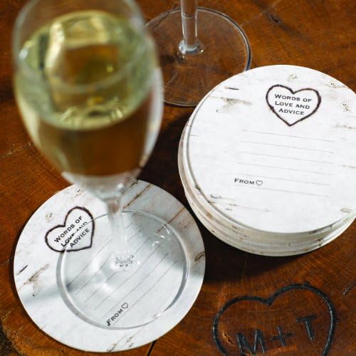 25 adet kağıt hamurundan üretilmiş bardak altlığı seti, özellikle düğün davetleri veya kutlamalar için tasarlanmıştır. Kalp motifi içeren rustik ahşap dokulu tasarım, üzerinde şu metni içerir: Words of Advice Beş satır tavsiye yazmak ve imza eklemek için alan içerir. Misafirlerinize size kişisel mesajlar bırakma imkanı sunar. Arkadaşlarınızı ve bu özel zamanı sonsuza dek hatırlayın. B. Hewitt Ahşap Tahıl Tasarımı Tavsiye Sözleri Bardak Altlıkları, 25'li Set