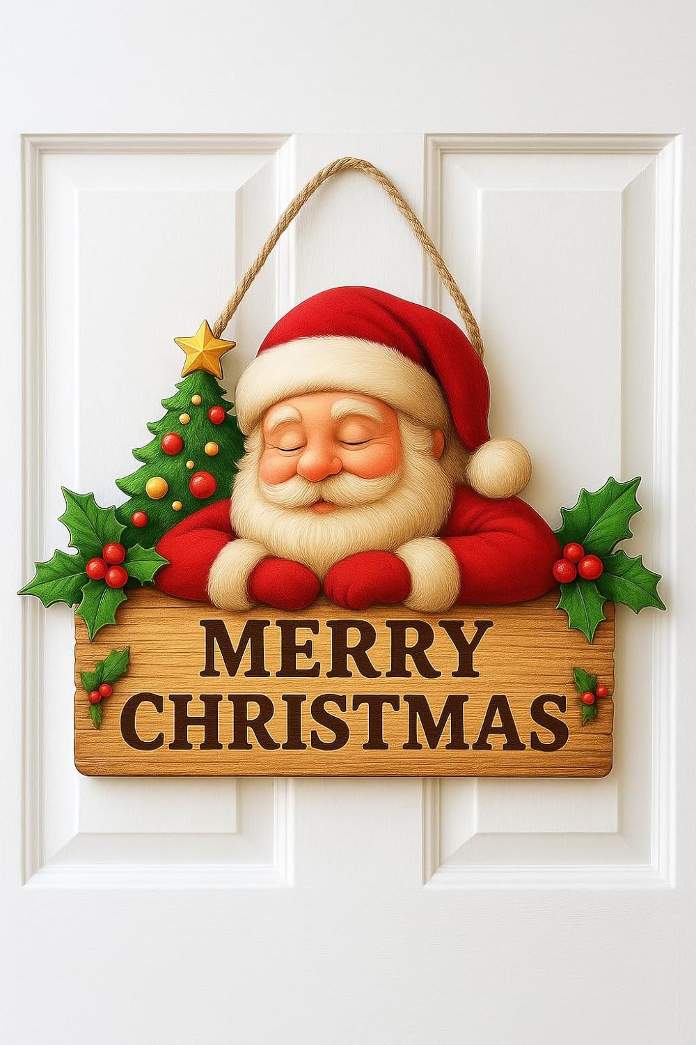 Malzeme: Ahşap 1.Sınıf Boyama Kapı Süsü Babalı Ahşap Kapı Yılbaşı Kapı Yılbaşı Süsü, Kapı Süsü (30-20 cm)
