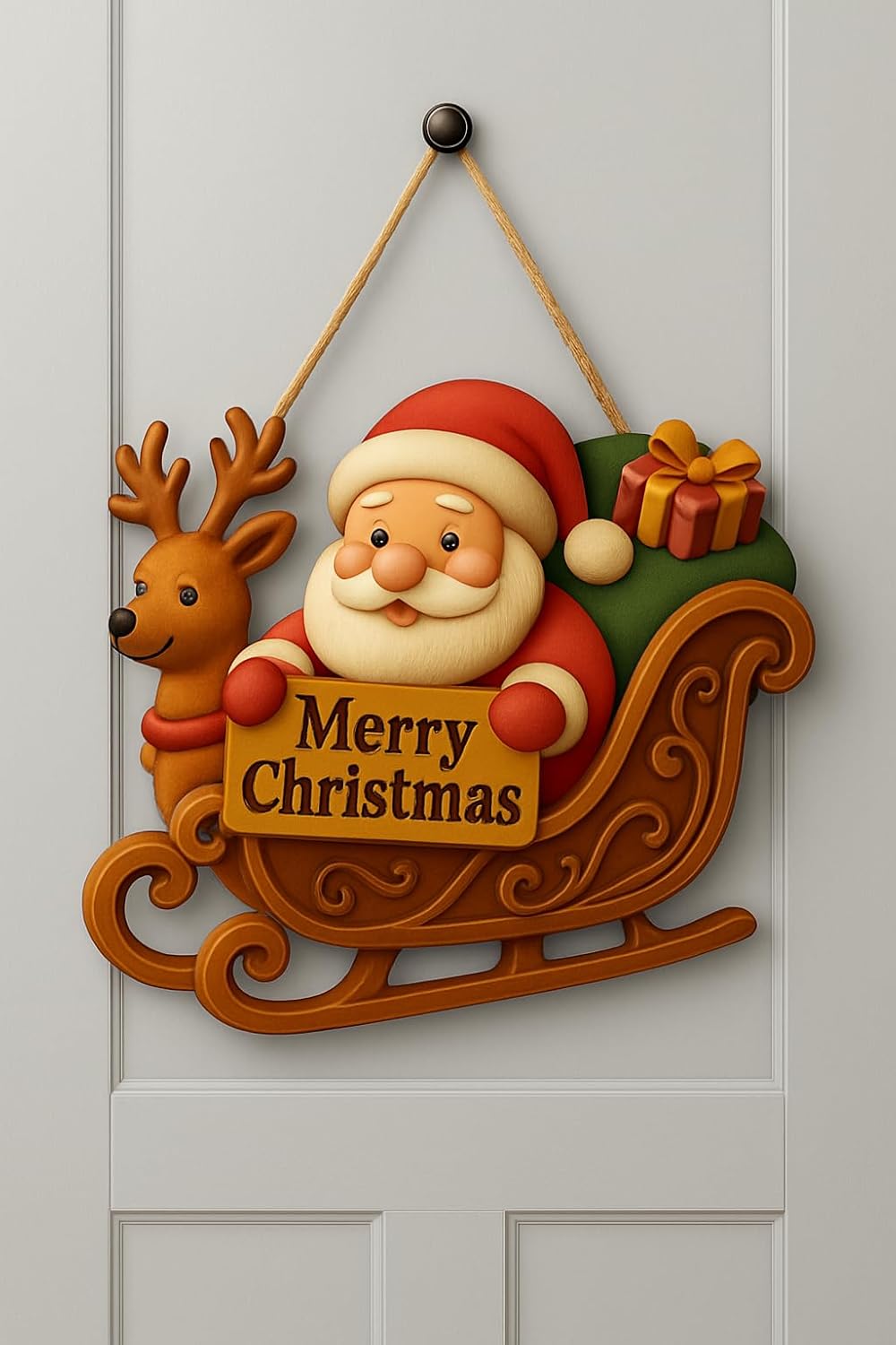 Babalı Kızaklı Hediye Paketli Yılbaşı Geyikli Kapı Süsü, Yılbaşı Süsü Yılbaşı Temalı Hediyeler (30-18 cm)