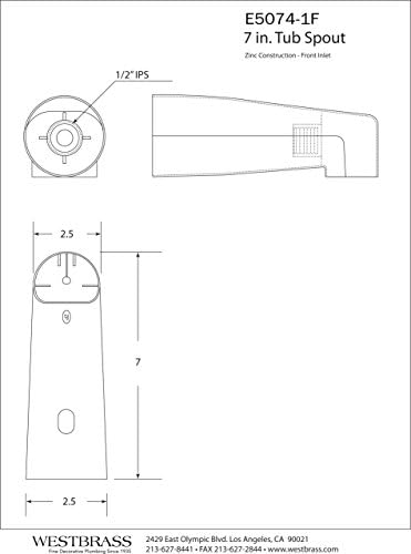 Küvet Ağızlığı, 17,78 cm erişim 1,27 cm. bakır emzik 1,27 cm'ye uyar. bakır saplama Çinko yapı Bakır Boru, Cilalı Krom, E5074-1F-26 için 7″ Küvet Ağzı