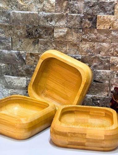 Bambu 3'lü Ahşap Sunum Seti Kahvaltılık Çerezlik Reçellik Tepsili Şık ve Pratik Servis Ürünü (Kare)