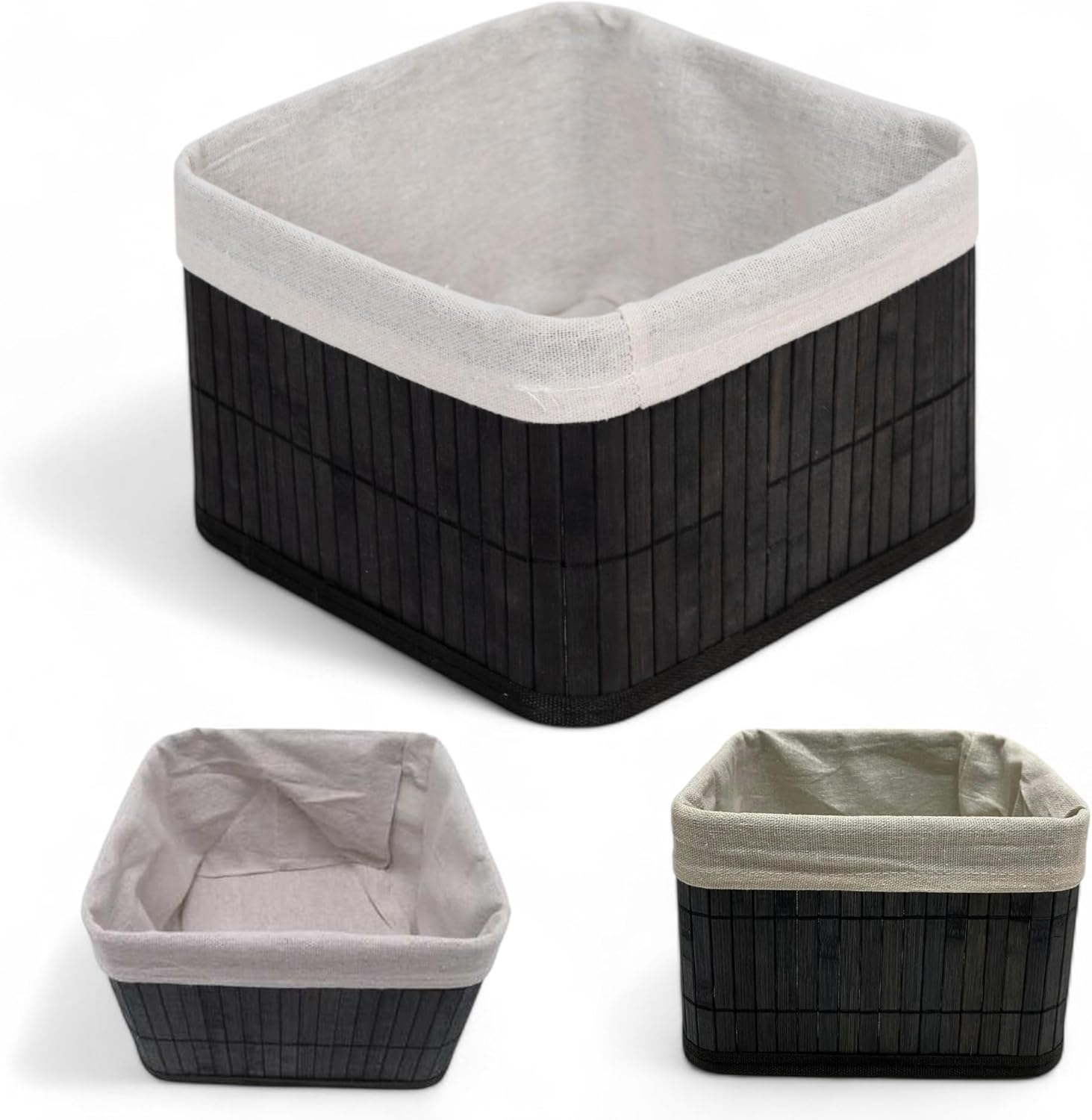 Bambu Çok Amaçlı Saklama Kutusu Düzenleyici Kare Organizer, Dekoratif Bambu Düzenleyici SİYAH (20x20x13cm)
