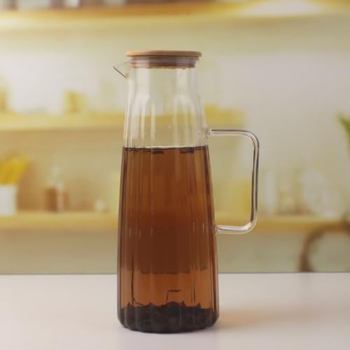 Bambu Kapaklı Borosilikat Cam Yağdanlık ve Sürahi | 1000ml (11x26cm) Çok Amaçlı İçecek ve Sıvı Gıda Saklama