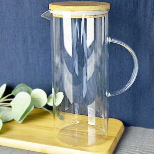 Bambu Kapaklı Cam Sürahi – 1500 ml Dayanıklı Şeffaf Cam, Şık ve Ergonomik Tasarım, Soğuk ve İçecekler İçin
