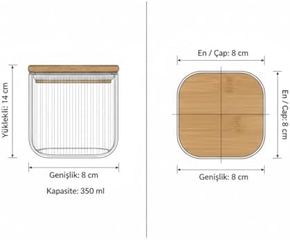 Bambu Kapaklı Kare Cam Kavanoz – 350 ml, Sızdırmaz Contalı, Şeffaf Çizgili Tasarım, Çok Amaçlı Saklama Kabı