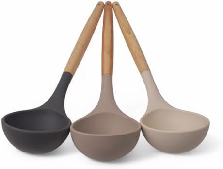 Bambu Saplı Silikon Kepçe, Bambu Uzun Silikon Çorba ve Sos Kepçesi 27cm 3 Renk Seçenekli (SİYAH)
