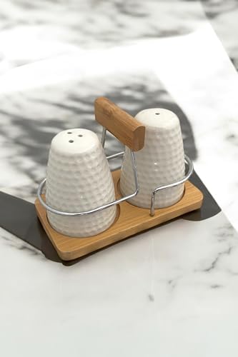 Bambu Standlı Porselen Tuzluk ve Karabiberlik