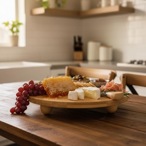 Bambu Top Ayaklı Yuvarlak Sunumluk – 30cm Çap Seçenekli Doğal Ahşap Servis Tabağı | Peynir, Meze, Kek Standı, Kahvaltı ve Charcuterie Board | Yükseltilmiş Masaüstü Tepsi (30 CM)