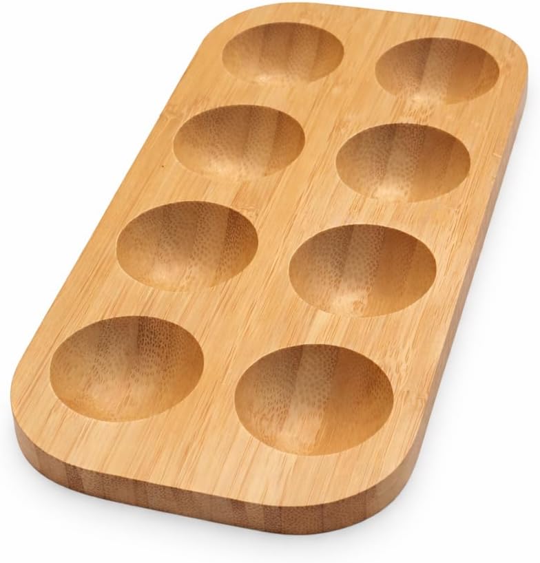 Bambu Yumurtalık 8 Gözlü, Suya Dayanıklı Pürüzsüz Yumurta Standı, Tezgah ve Dolap Kullanımı