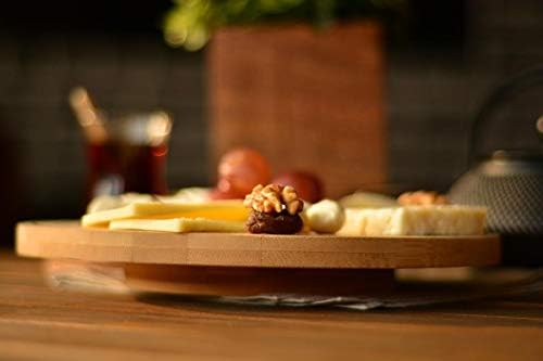 Peynir sunum standı, her türlü peynir sunumuna zenginlik eklemek için tasarlanmıştır. Bambu ürünleri çelik, porselen veya cam gibi diğer tabak çanaklara kıyasla çok benzersizdir. Bambu ürünleri sağlıklı, şık ve şıktır. bambum B2879 lasiago-rotating peynir servis tahtası, kahverengi