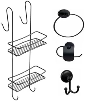 Banyo Aksesuar Seti 4 Lü Siyah,ömür Boyu Paslanmaz Duşakabin Askısı Duş Rafı Şampuanlık Siyah