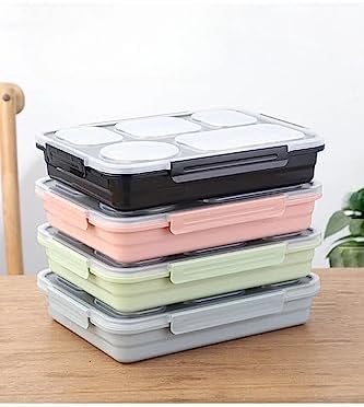 1600ml Paslanmaz Çelik Sızdırmaz Lunchbox Bento 1600ml Lunchbox Tek Katlı 5 Bölmeli Çelik Sefer Tası Yemek Kutusu (Siyah) Bento 1600ml Lunchbox Tek Katlı 5 Bölmeli Çelik Sefer Tası Yemek Kutusu (Siyah)