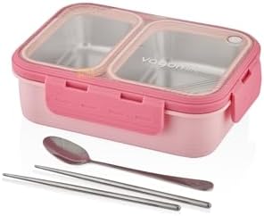 700ml Kaliteli Paslanmaz Çelik (SUS304) 2 bölme metal kaşık ve chopstick hediyeli Bento 700ml Lunchbox Tek Katlı 2 Bölmeli Çelik Sefer Tası Yemek Kutusu (Pembe)