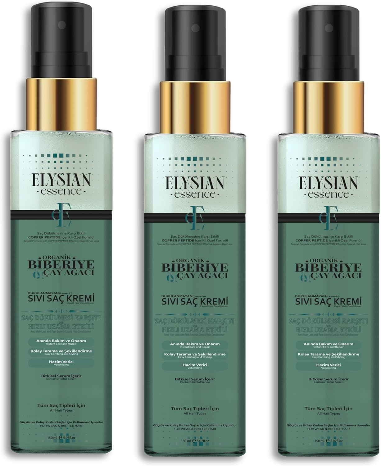Biberiye & Çay Ağacı Sıvı Saç Kremi 3'lü Set – Durulanmayan, Saç Dökülmesine Karşı, Hızlı Uzama Etkili Bakım Spreyi 150 ML