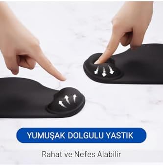 Bilek Destekli Ergonomik Kaymaz Taban Mouse Pad, Masa Pedi Siyah