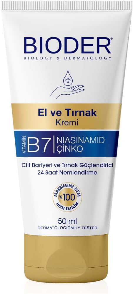 Bioder El ve Tırnak Bakım Kremi 50 ml – , Niasinamid ve Çinko İçerikli Nemlendirici, Tırnak Güçlendirici