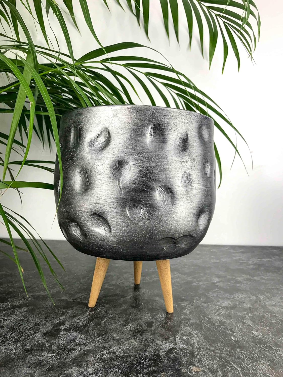 deliksiz Bitki Tasarımı Ev Dekorasyon Aksesuar Gümüş Desenli Toprak Saksı Saksılık Salon Çiçeklik 3 Ayaklı – 19 CM