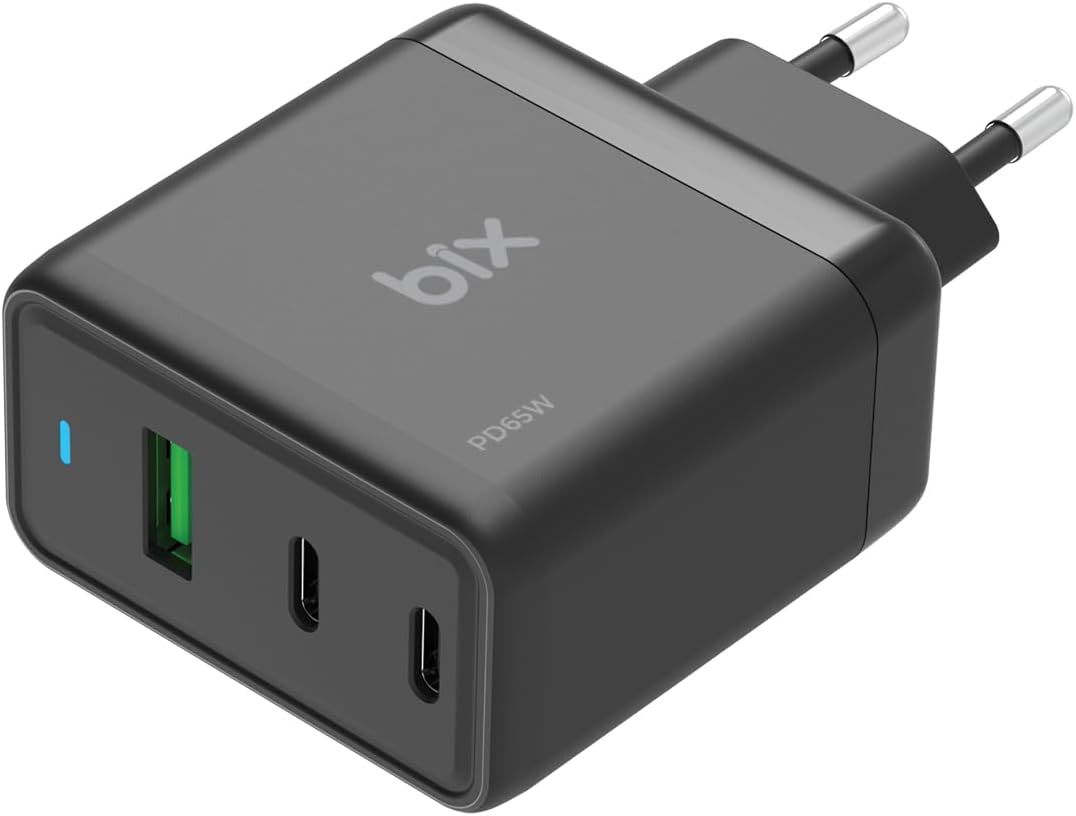 Bix BX3P65G 65W GaN Qualcom 4.0 2*Type-C & USB-A 3 Portlu, MacBook Pro/Air, iPad Air/Pro, 16/15/14/14 Pro Max /13/13 Pro Max, Galaxy S24/S23/S22/S21 Uyumlu BX-3P65G
