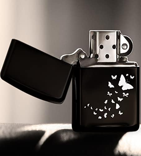 BK Kelebekler Tasarımlı Siyah Benzinli Metal Çakmak