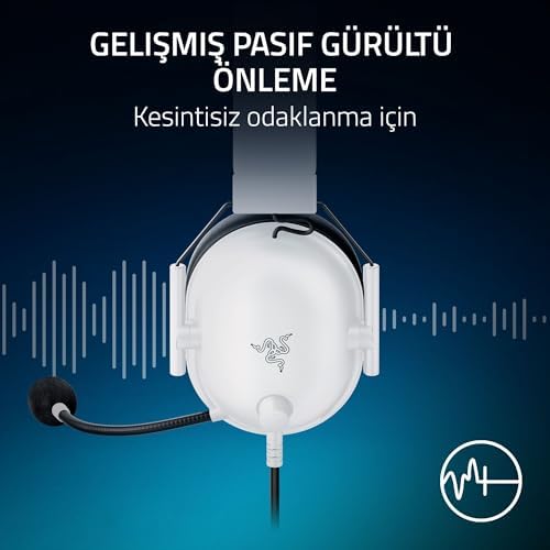 BlackShark V2 X – 5 konsolu için kablolu e-spor kulaklık (250g, kardioid mikrofon, 50mm sürücüler, pasif gürültü engelleme, 3.5mm jak) Beyaz