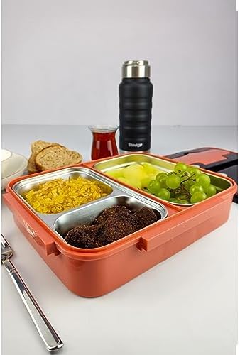 desen: Düz Bölmeli Çelik Hazneli Yemek Kabı 25 Cm Turuncu – YK1392