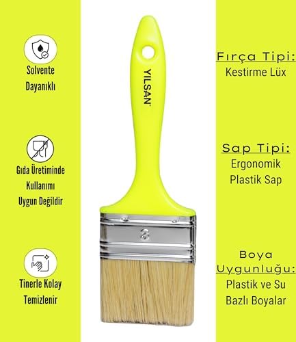 Dayanıklı Kıllar: Yılsan boya fırçaları, dökülmeye ve yıpranmaya karşı dirençli, yüksek kaliteli kıllardan üretilmiştir. Bu sayede fırçalarınız uzun ömürlü olur ve her seferinde kusursuz bir boyama deneyimi yaşarsınız. Ergonomik Sap Tasarımı: Fırçalarımızın sapları, ele rahatça oturan ve kaymayan ergonomik tasarıma sahiptir. Bu sayede uzun süreli boyama işlemlerinde bile el yorgunluğu yaşamadan konforlu bir şekilde çalışabilirsiniz. Mükemmel Boya Tutma: Yılsan boya fırçaları, boya tutma ve uygulama yeteneği bakımından oldukça başarılıdır. Fırçalarınızla boyayı kolayca yüzeye aktarabilir ve pürüzsüz bir şekilde yayabilirsiniz. Kolay Temizleme: Fırçalarınızı kullandıktan sonra tiner ile kolayca temizleyebilirsiniz. Bu sayede fırçalarınız her zaman kullanıma hazır olur ve ömrü uzar. Geniş Ürün Yelpazesi: Yılsan, her ihtiyaca ve bütçeye uygun boya fırçası seçeneği sunar. Duvar boyası, mobilyalar boyası, yağlı boya, tempera boya, akrilik boya vb. tüm boya türleri için uygun fırçaları aşağıdaki ürün açıklamasındaki rehberden bulabilirsiniz. Boya Fırçası [No: 3 (7.5 cm), Kestirme Lüks]