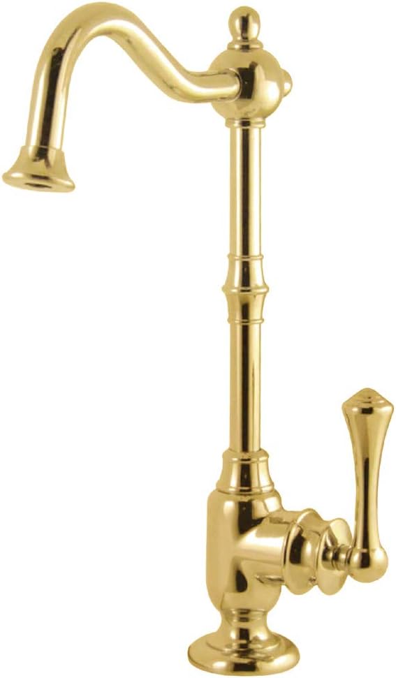 Katı pirinçten imal edilmiştir 60 PSI'da 1,5 GPM Kolay kurulum 10-1/2 “emzik yüksekliği 5 inç ağızlı erişim Ters ozmoz (R.O) veya anlık sıcak su sistemleri için uygun değildir. Sadece soğuk su kullanın. BRASS KS7392BL Soğuk Su Filtrasyon Musluk, Parlak Pirinç