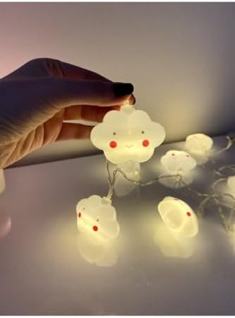 Bulut Şeklinde 10’lu LED Işık Zinciri – 2 Metre Dekoratif Aydınlatma, Pil ile Çalışan Sevimli Bulut LED Süsleme Işıkları, MZ-314, Beyaz