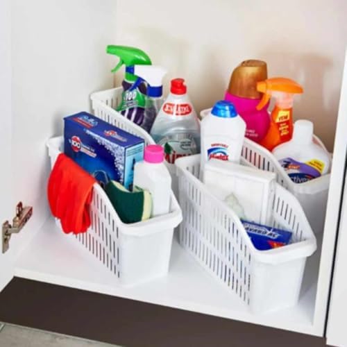 Buzdolabı Düzenleyici Sebzelik Dar Sepet Seti, Çok Amaçlı Plastik Organizer, 4 Parça, Krem