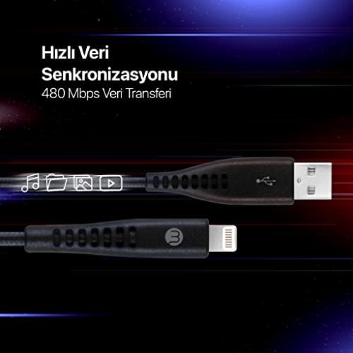 300cm USB-A – Lightning kablo 480Mbps veri transfer hızı by USB-A – Lightning 2A Şarj Kablosu 300cm-Siyah – 3DK37S by USB-A – Lightning 2A Şarj Kablosu 300cm-Siyah – 3DK37S