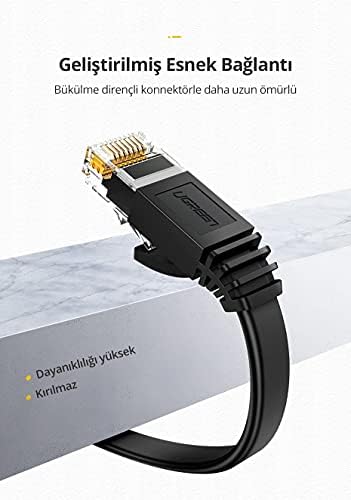 1000 Mbps Veri Aktarım Hızı 250Mhz Frekans RJ 45 Konnektör CAT6 Flat Ethernet Kablosu, 1 Metre, Siyah