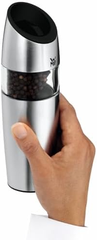 İçerik: 1 x elektrikli baharat değirmeni (yükseklik 20 cm) 6 AAA 1,5 V pil dahil – Ürün numarası: 0667346030. Malzeme: Cromargan paslanmaz çelik 18/10 mat, akrilik cam, plastik kapak, seramik değirmen – cam kap bulaşık makinesinde yıkanabilir. Değirmen eğildiğinde değirmen otomatik olarak açılır ve kapanır. Güçlü elektrikli motor yüksek bir öğütme debisi sağlar. Kademesiz öğütme kalınlığı ayarı, kabadan ince Seramik değirmen çelikten daha serttir, korozyon ve aşınmaz. Karabiber ve tuz tanelerini, kurutulmuş otları (acı biber) ve baharatları öğütür. Seramik, gıda maddelerine uygundur ve aşınmaz. Üretici garantisi: Seramik değirmeni 10 yıl. Garanti koşullarını “Diğer teknik bilgiler” altında bulabilirsiniz. Çelik Pilli Sensörlü Baharat Değirmeni