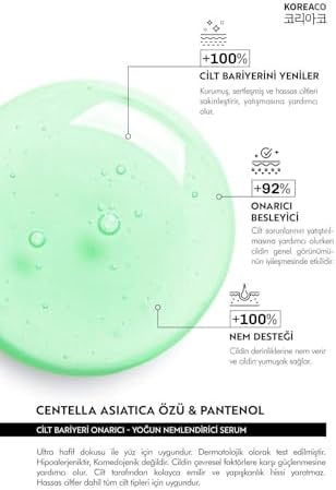 Nemlendirici özelliği ile pürüzsüz bir cilt görünümü sunar Centella ve Cica ve Ceramide Onarıcı, Aydınlatıcı, 24 Saat Nemlendirme Ampoule Centella ve Cica ve Ceramide Onarıcı, Aydınlatıcı, 24 Saat Nemlendirme Ampoule