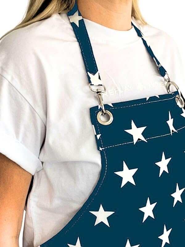 Cepli Su Geçirmez Mutfak Önlüğü Yıldızlı Mavi Cepli Su Geçirmez Mutfak Önlüğü Yıldızlı Mavi