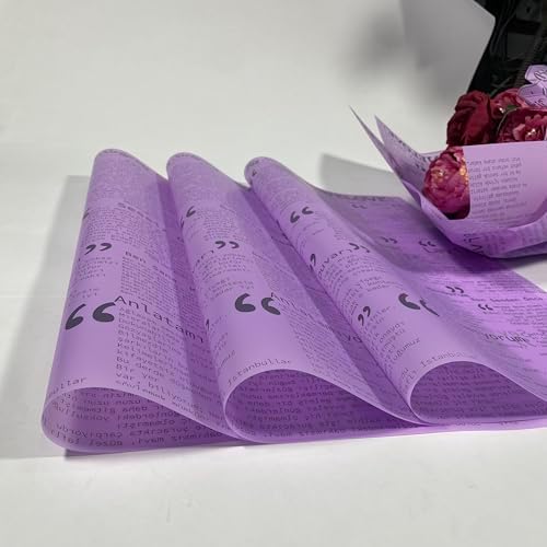 gazete çiçek Çiçek Buket kağıdı-Şiir Koleksiyonu-Mor Renk-Mat Opp-55x55cm-10Sayfa