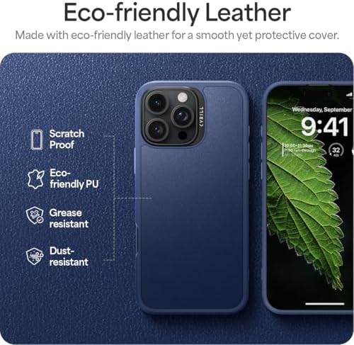 Ciel by 16 Pro Max ile Uyumlu MagSafe Kılıf Kajuk Mag Hava Kanalı Teknolojisi™ Askeri Sınıf Koruma Navy Vegan Deri Kapak – ACS08399