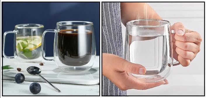 Çift Cidarlı Kulplu Kahve Kupası (Borosilikat)