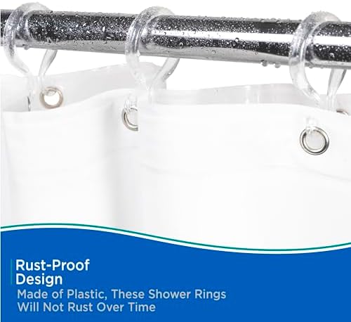 Paket başına 12 kanca Duş çubuğu boyunca sorunsuz bir şekilde süzülür Duş perdesini çıkarmadan astarı hızlı ve kolay bir şekilde değiştirin Çift Duş Perdesi Kancası (12'li Set), Şeffaf