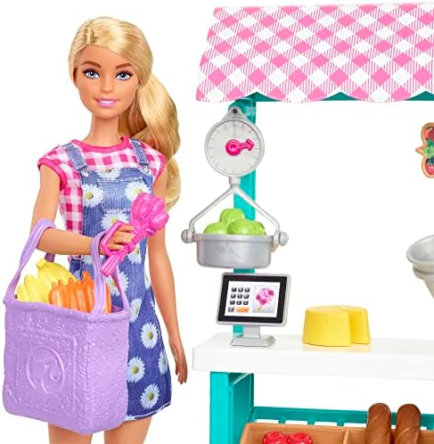 ® Çiftçi Pazarı oyun seti – sarı saçlı bebek, bebek, tezgah, kasa, sebzeler, ekmek, çiçekler ve çok daha fazlasıyla Çiftçi Pazarı oyun seti, 3 yaş ve üzeri, HCN22