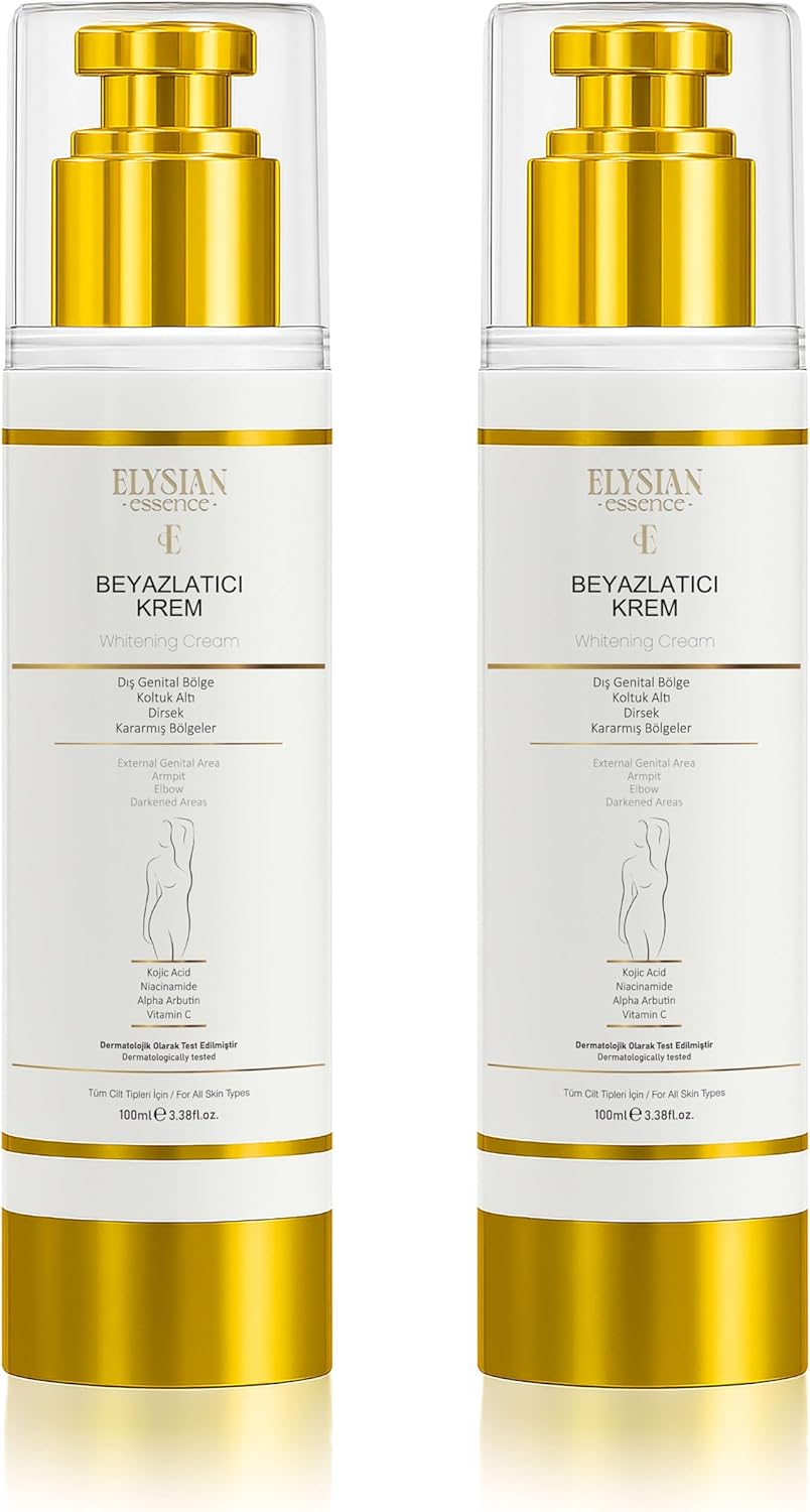 ELYSIAN ESSENCE Beyazlatıcı Krem: Aydınlık ve Eşit Tonda Bir Cilt İçin Kapsamlı Bakım Cilt Beyazlatıcı | Kararma Giderici Krem 2'li Set – Genital Bölge, Koltuk Altı, Bikini Bölgesi, Dirsek ve Vücut 100 ml